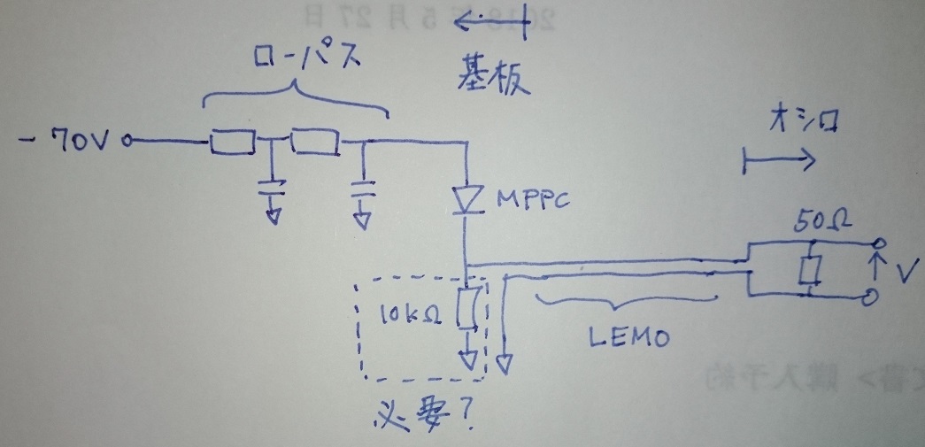 本当はMPPC下流側とLEMOコネクタの間にコンデンサをはさみハイパスを構成する