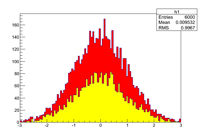 h1->SetFillColor(kRed);//あらかじめFillColorをSetしておく