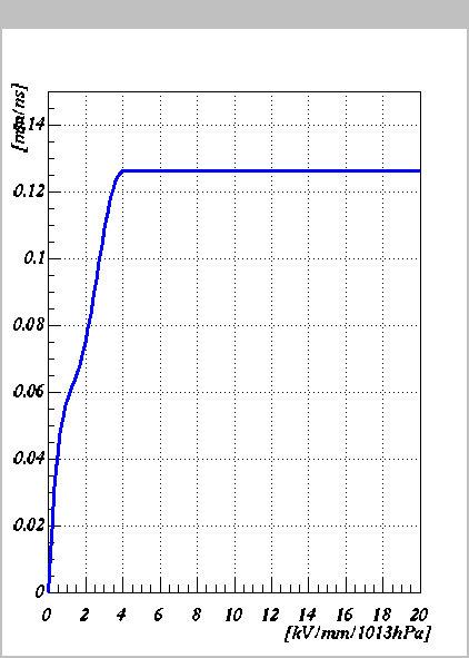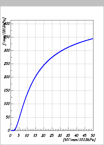- drift velocityの表示。1.6kV/mm/1013hPaまではIsraelの