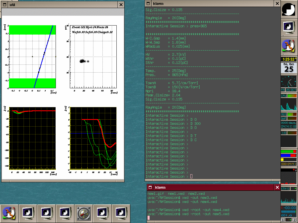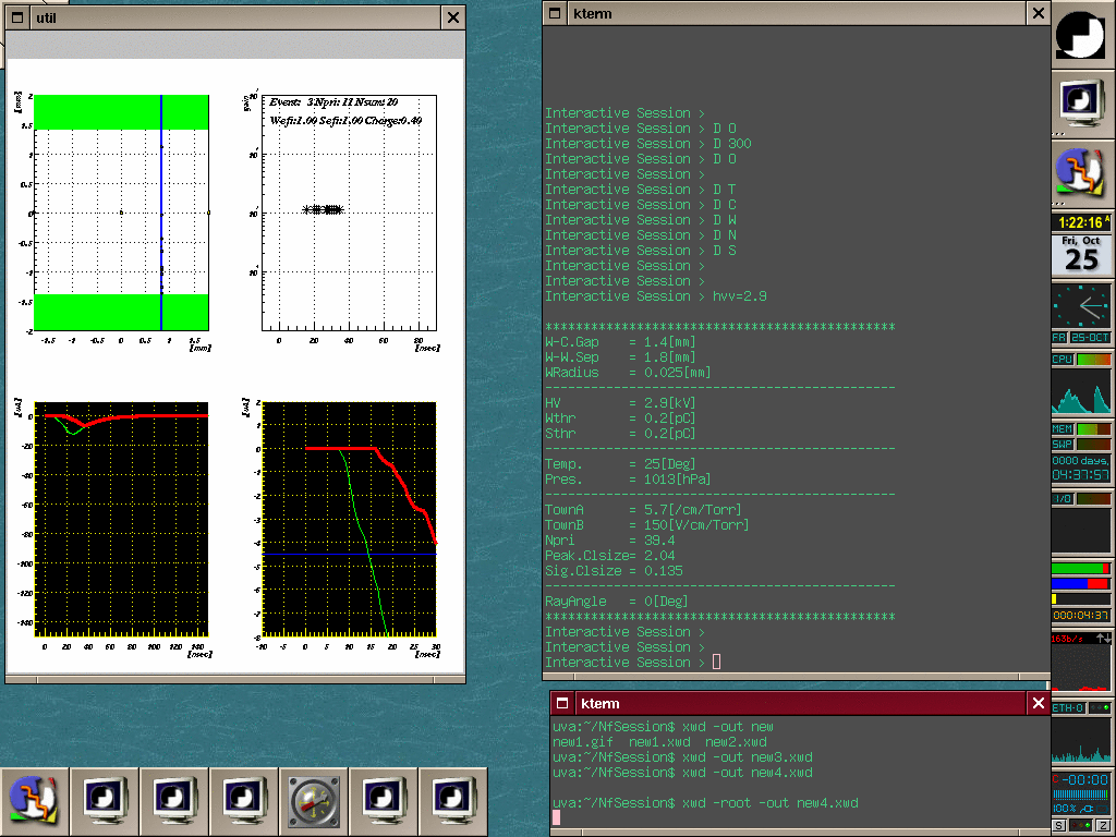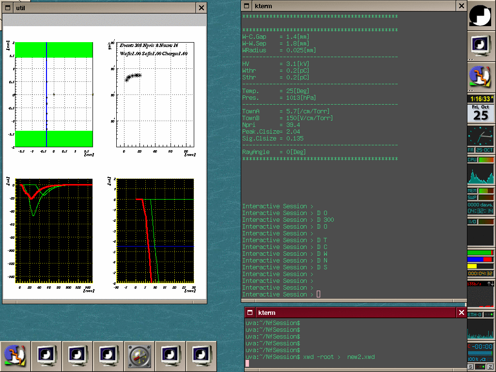 drift velocity、電離係数、gainと表示され、interactive sessionへ入る。