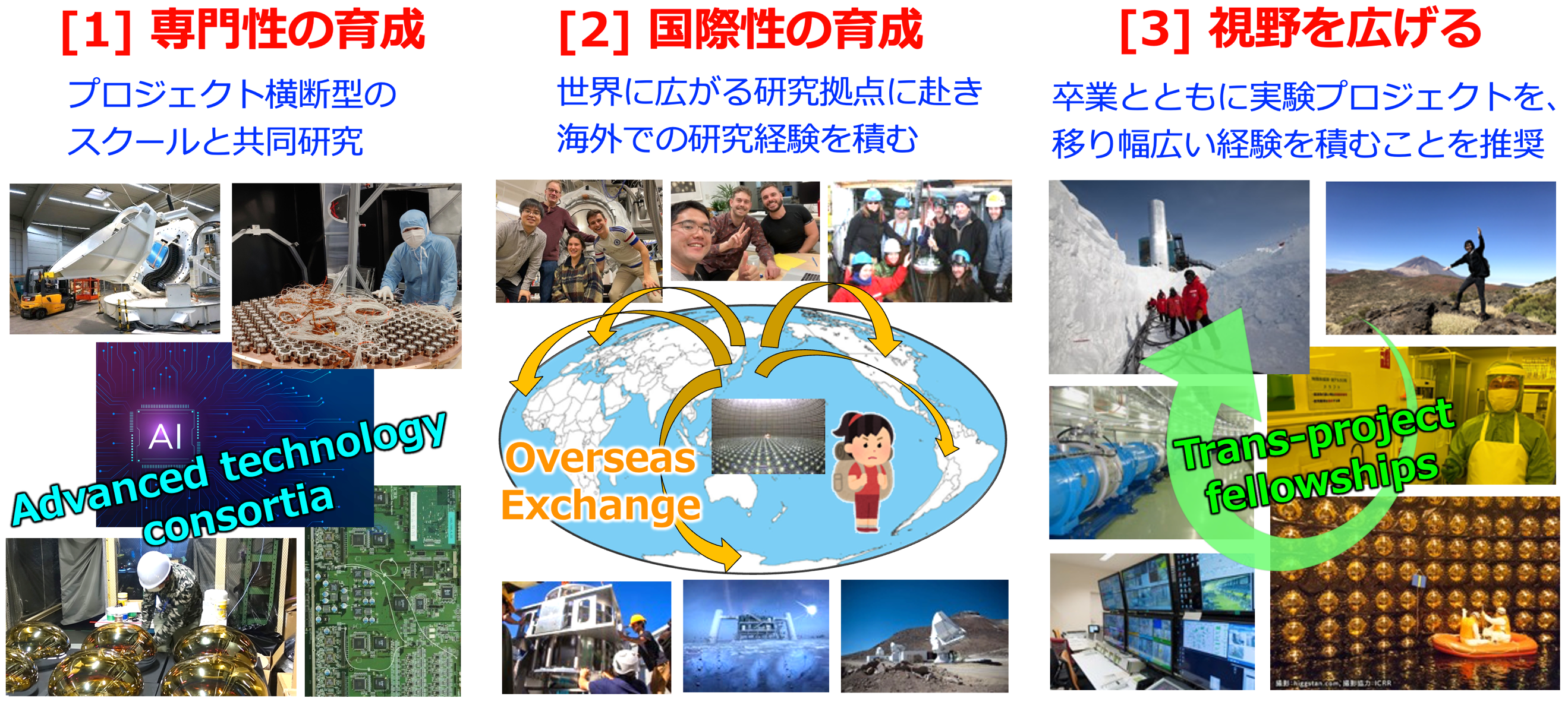 世界の最先端を走る日本のニュートリノ研究の専門性と国際共同研究における海外経験で得られる国際性の融合により、次世代の国際プロジェクトを率いるリーダーを育成する。